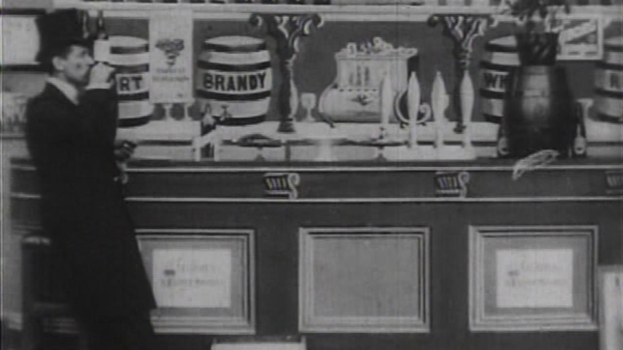 Un dernier mot sur cette présence du champagne dans le film de Zecca et Velle, et plus largement dans les premiers films muets. Le cinéma – et qui plus est, le cinéma muet – a probablement été le premier média fondamentalement international. Avant que naissent la radio et la télévision, et tandis que la presse écrite reste essentiellement locale et ne s’adresse qu’aux personnes capables de lire, le cinéma muet, d’emblée, parle à tous. Les histoire racontées le sont tout autant pour un public français, américain, qu’anglais ou allemand. De nombreux films tournés en France, en Angleterre ou aux USA se ressemblent fortement. Ce qui les distingue: un paysage (dans Dream of a Rarebit Fiend, la ville que le héros survole dans son lit est une ville américaine), un costume, un écriteau, mais aussi le choix de certains alcools. Les films français mettent davantage en scène l’absinthe, le vin (par exemple dans Victimes de l’alcoolisme évoqué plus haut) ou le champagne (par exemple dans Rêve et réalité, 1901, du même Ferdinand Zecca), alors que les films anglais et américains privilégient le brandy (par exemple Buy your own cherries, 1904, de Robert W. Paul), le whisky ou encore la bière.