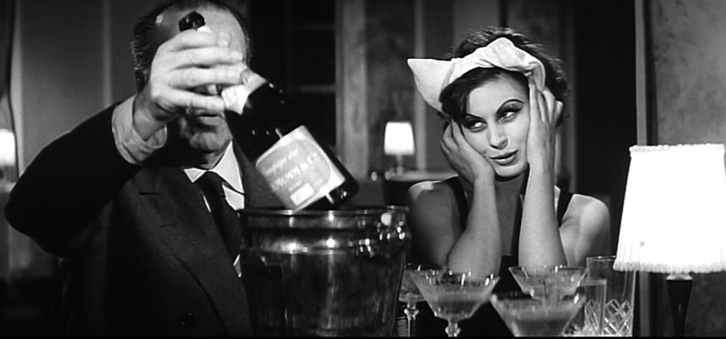 Or une bouteille se retrouva deux ans plus tard dans une scène d’un film qui devint mythique à Cannes, La dolce vita réalisé par Federico Fellini, récompensé par la Palme d’Or du festival de 1960. Lors d’une scène dans un cabaret romain, le père de Marcello Mastroianni joué par Annibale Ninchi commande du champagne, « du bon Clicquot », et se voit apporter un Cordon Rosé qu’il déguste en compagnie de Magalie Noël !