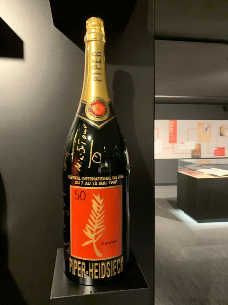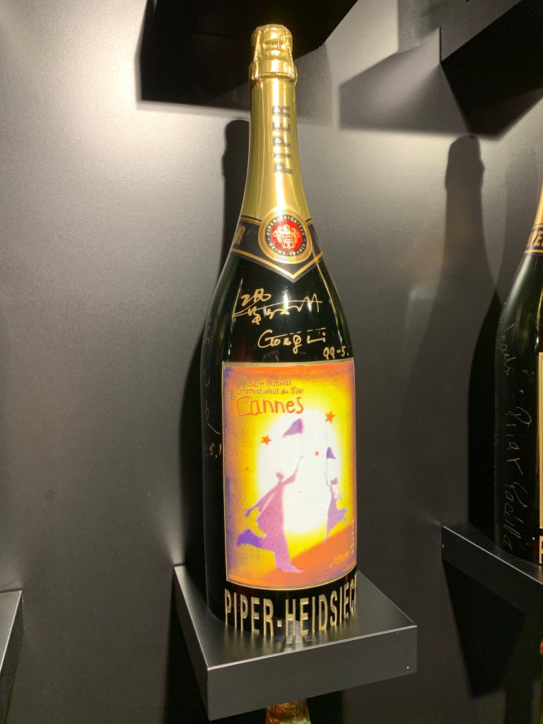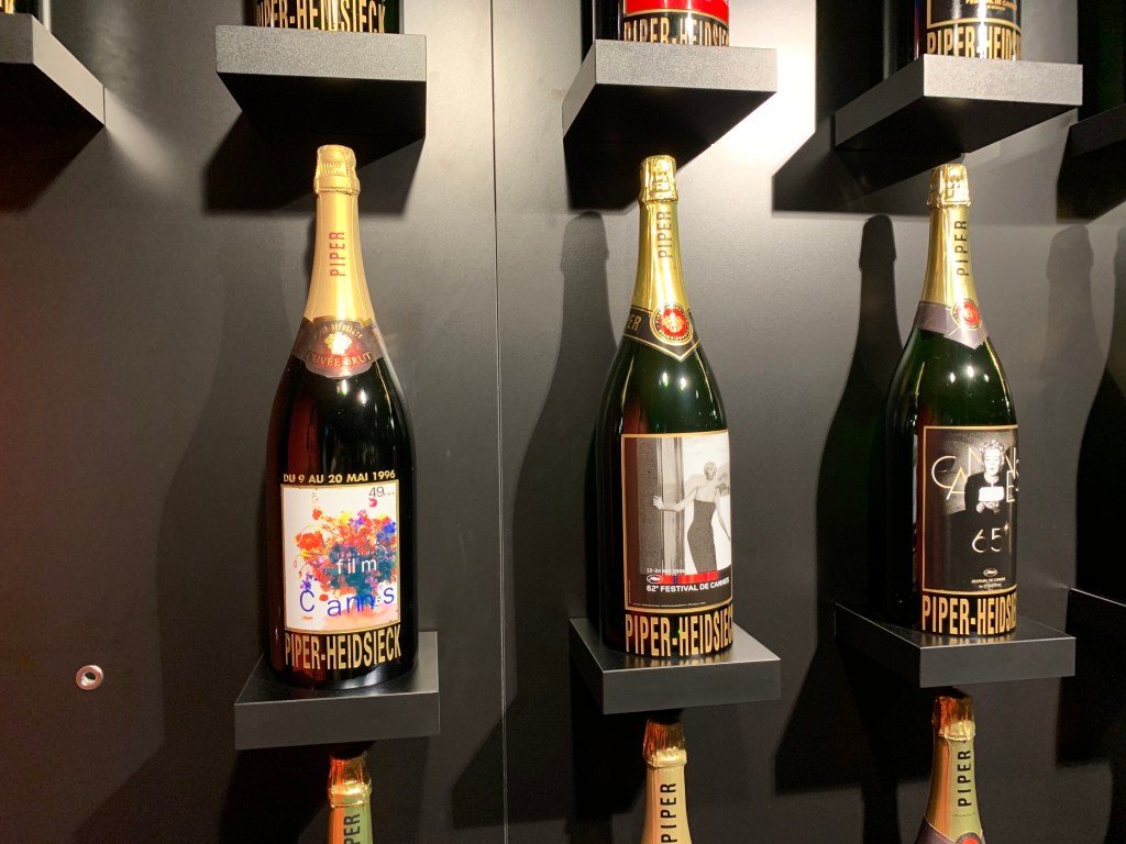 Aussi, chaque année, entre 1993 et 2020, la maison Piper-Heidsieck conçut-elle des cuvées spécial Cannes, avec des bouteilles « habillées » aux couleurs du festival et des étiquettes qui en reprenaient l’affiche.
